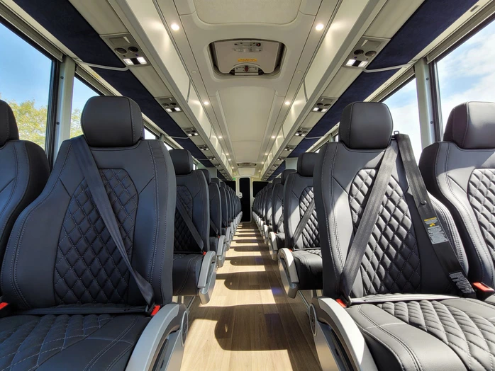 Our sprinter vans are designed to keep small groups moving comfortably through Hamilton's busiest corridors. Inside, you'll find high-back seats, individual seatbelts, and enough headroom to stand upright-ideal for quick stops along Main Street or long drives down I-275. Many of our sprinter vans include a dedicated rear luggage compartment, so you can store suitcases, instruments, or trade show materials without sacrificing legroom.